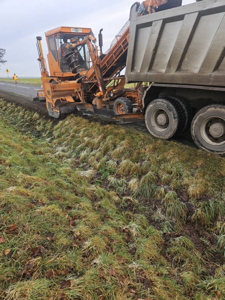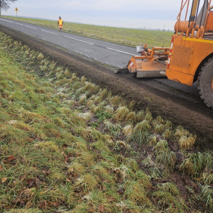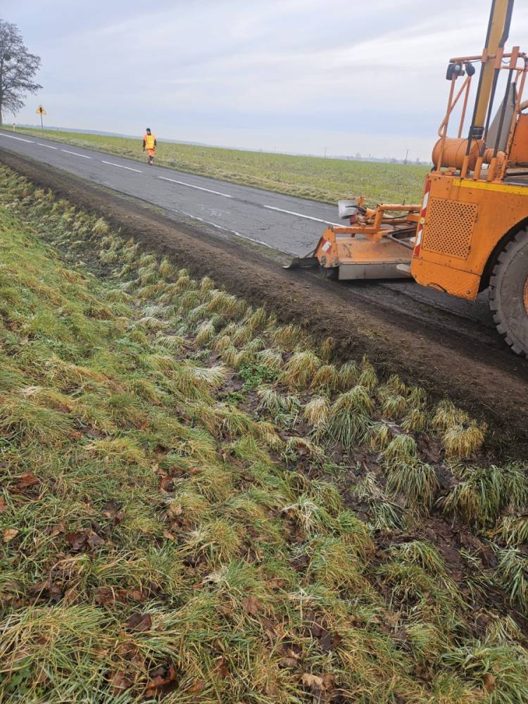 Ścinka poboczy przy DW338 Wołów - Lubiąż.